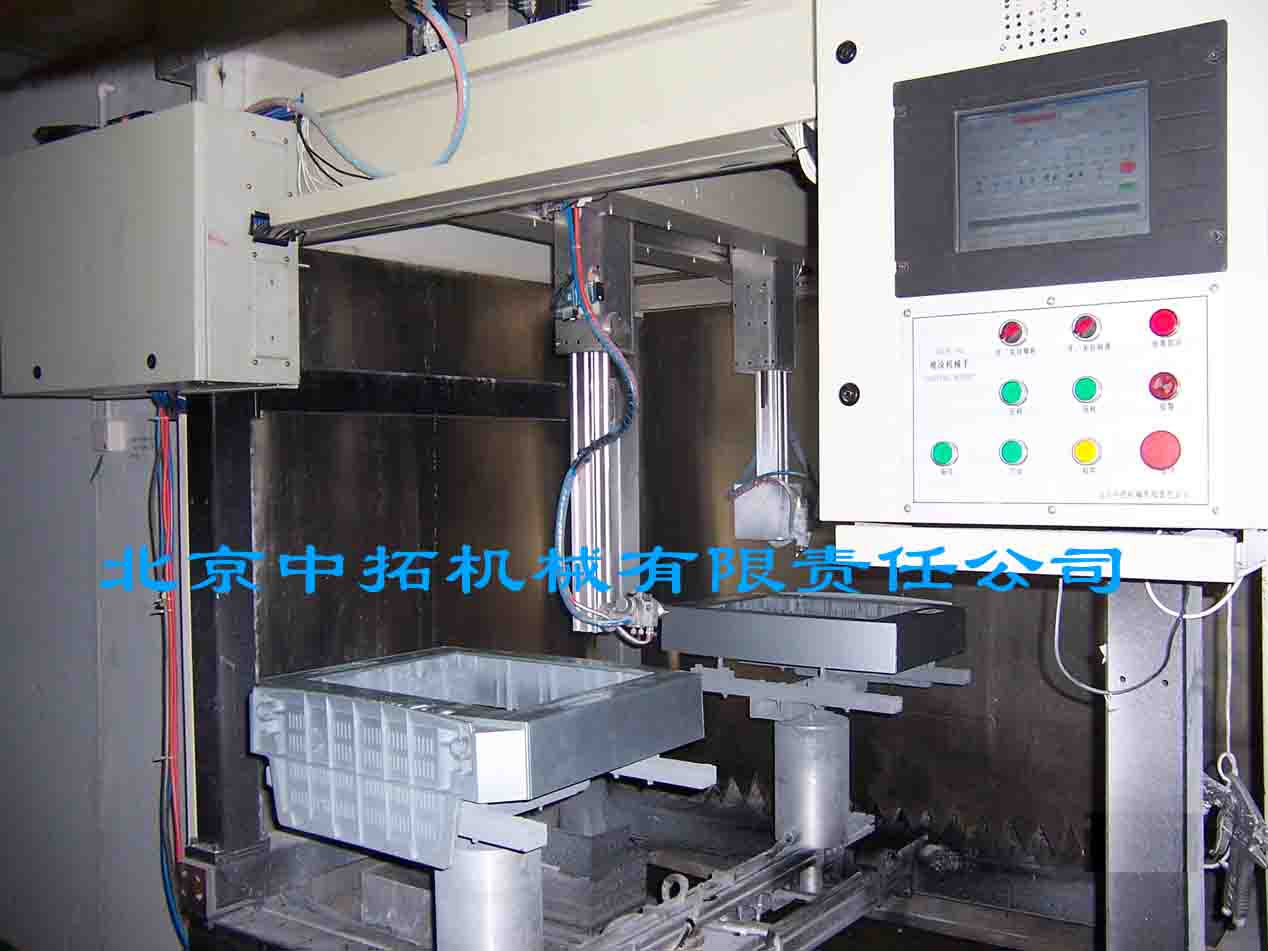 一側(cè)噴涂,一側(cè)取換工件。